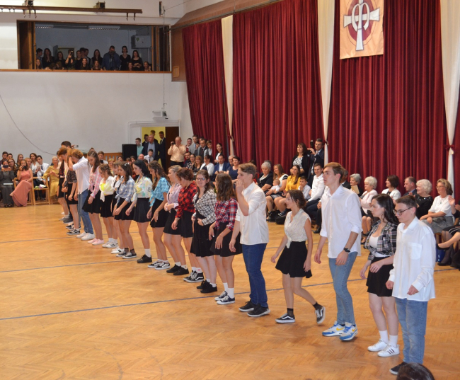 Örömteli, hálás és büszke szívvel ünnepelték szeretteik, tanáraik, nevelőik a 12. B osztály diákjait végzős báljuk alkalmából. Kívánjuk, a hétköznapokon is kísérje őket az ünnep melege, finom eleganciája, lendületes vidámsága; együttlétük továbbra is legyen ajándék, amiből táplálkozni tudnak.