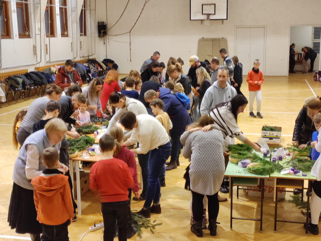 November 29-én délután sok lelkes gyermek és szülei készíthetett családjuknak adventi koszorút. A forró tea, az alkalomhoz illő zene és a fenyőágak illata ünnepi hangulatot teremtett. 2024/2025