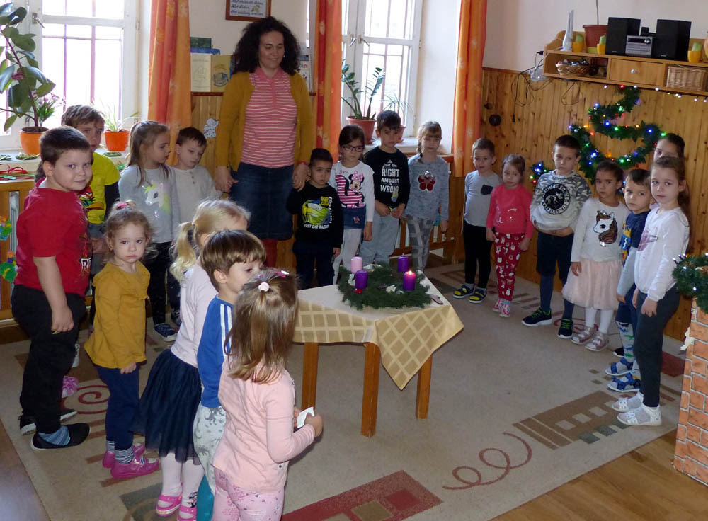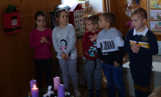 Óvodásaink adventi koszorúit csoportonként áldotta meg Kálmán József atya.