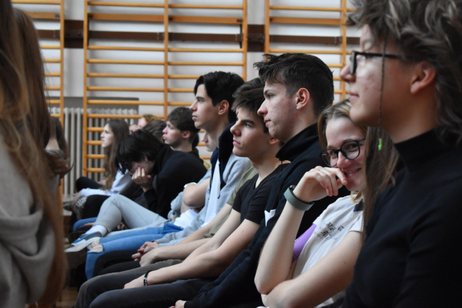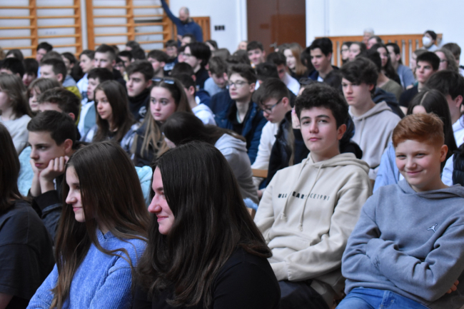 Rendhagyó “zeneórán” vehettek részt iskolánk felső tagozatos és gimnazista diákjai március 21-én a Filharmónia Magyarország szervezésében. A David Klezmer Quintet hangversenyén a sajátos hangzásvilágú klezmer műfajával ismerkedhettek meg a tanulók. A felszabadult, tüzes hangulatot a zsidó dalokból és az ezekhez szervesen kapcsolódó improvizatív szólókból álló vidám, show-elemeket sem nélkülöző műsorukkal érték el. A koncert zárószámába vidáman kapcsolódtak be bátrabb diákjaink is.