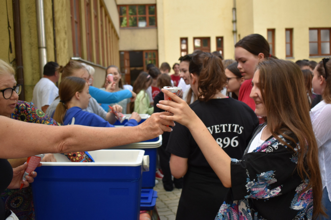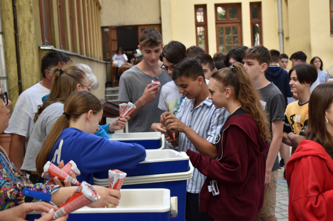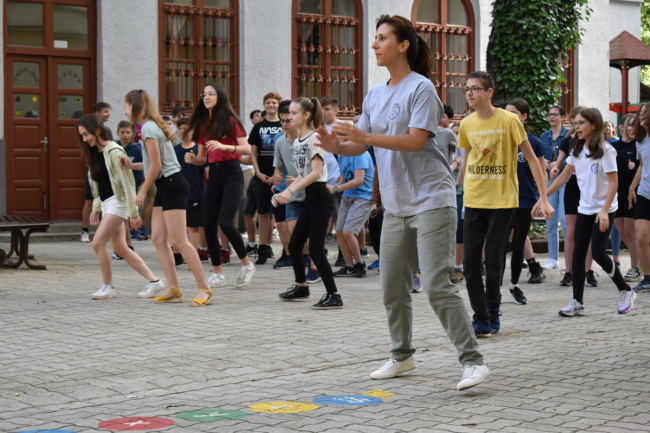 A tanév vége felé közeledve gimnáziumunk diákönkormányzata megrendezte a hagyományos évbúcsúztató napját. A reggeli bemelegítő közös zumba után a diákság megannyi programból választhatta ki a neki megfelelőt: a csapatsportoktól kezdve a társasjátékokon át egészen az életnagyságú honfoglalóval bezárólag a diákok megtalálhatták a számukra legkedvesebb tevékenységet. A programok folytatásaként pedig a Svetits Art kiállítás képeit csodálhattuk meg, örvendezve tehetséges iskolatársaink munkáinak, majd a színjátszókörünk meglepetés előadását tekinthettük meg.