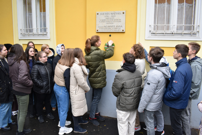 Hagyományainkhoz híven megemlékeztünk alapítóinkról, jótevőinkről, különös tisztelettel intézményünk egykori igazgatójáról, Mellau Mártonról, aki 110 éve kapcsolódott be a Svetits életébe. Felkerestük a város iskolánkhoz kötődő emlékhelyeit, bejártuk épületegyüttesünk zegzugait, ahol a múlt fontos ám kevésbé ismert emlékeit elevenítettük fel. A Kodály Kórus interaktív koncertje az irodalom és a zene izgalmas kölcsönhatását villantotta fel különböző korok alkotásainak segítségével. A nap a DÖK által szervezett Ki mit tud?-dal és az azt követő vidám hangulatú Svetits Afterrel zárult.